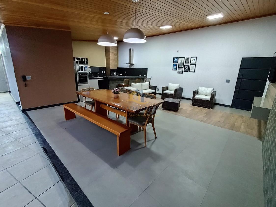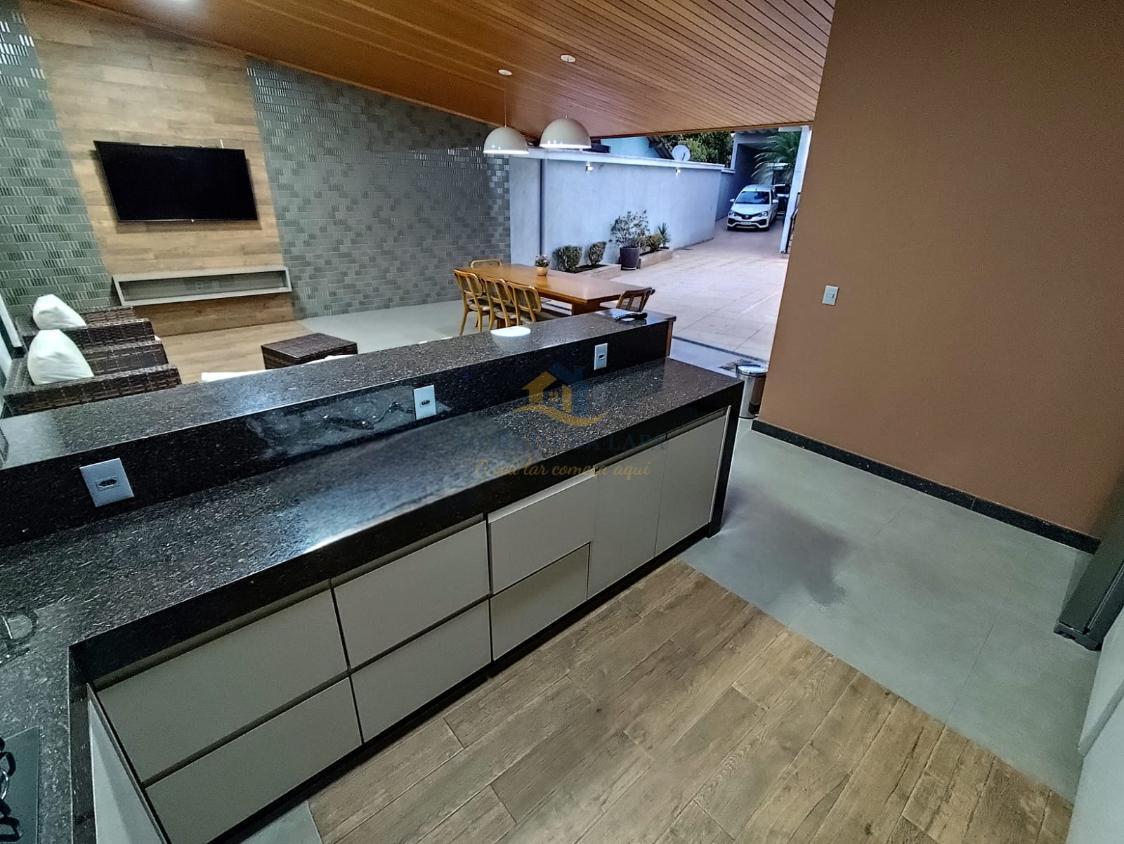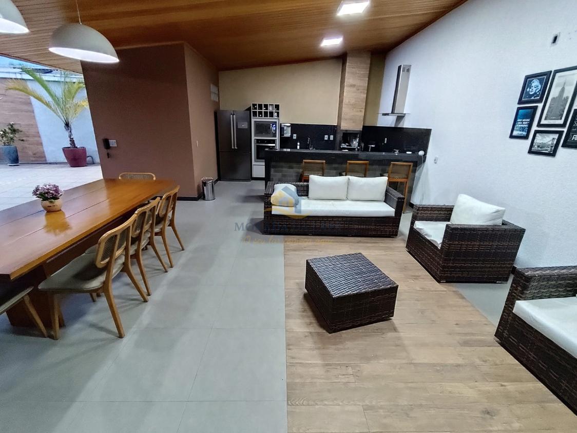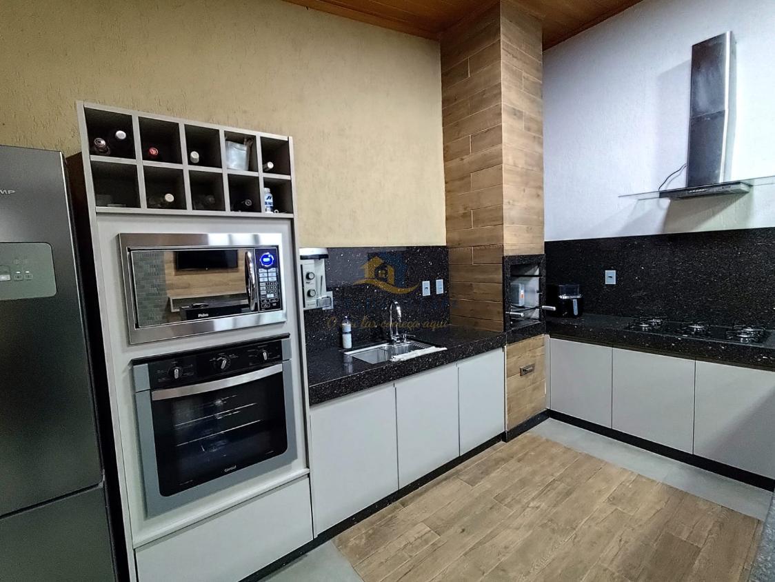 Magnífico espaço gourmet, composto por: cozinha com armários planejados, bancadas e balcão em granito e churrasqueira