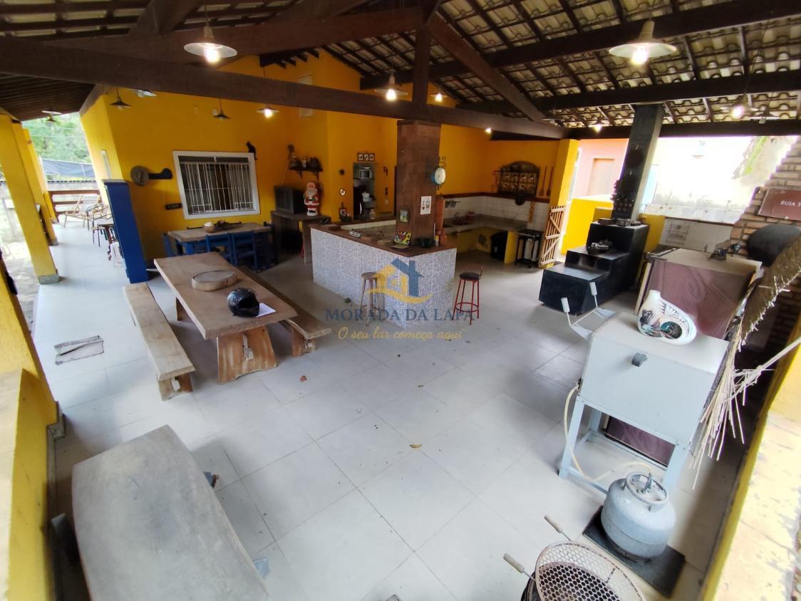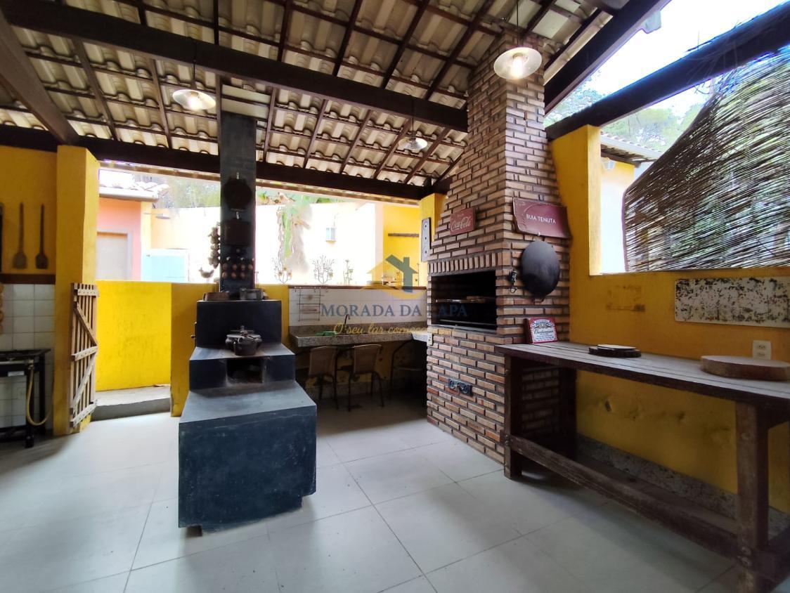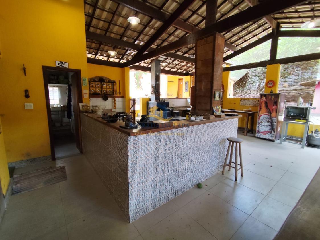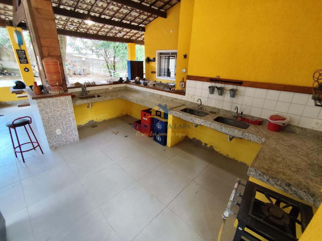 Área gourmet com churrasqueira, fogão a lenha, balcão/Bar, 4 pias distribuidas estrategicamente e lavabo (masculino e feminino)