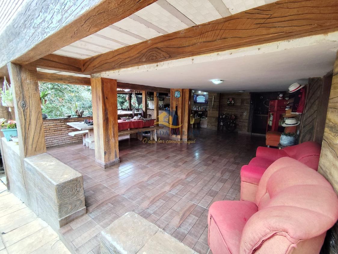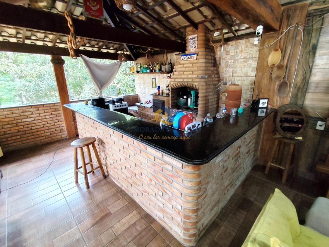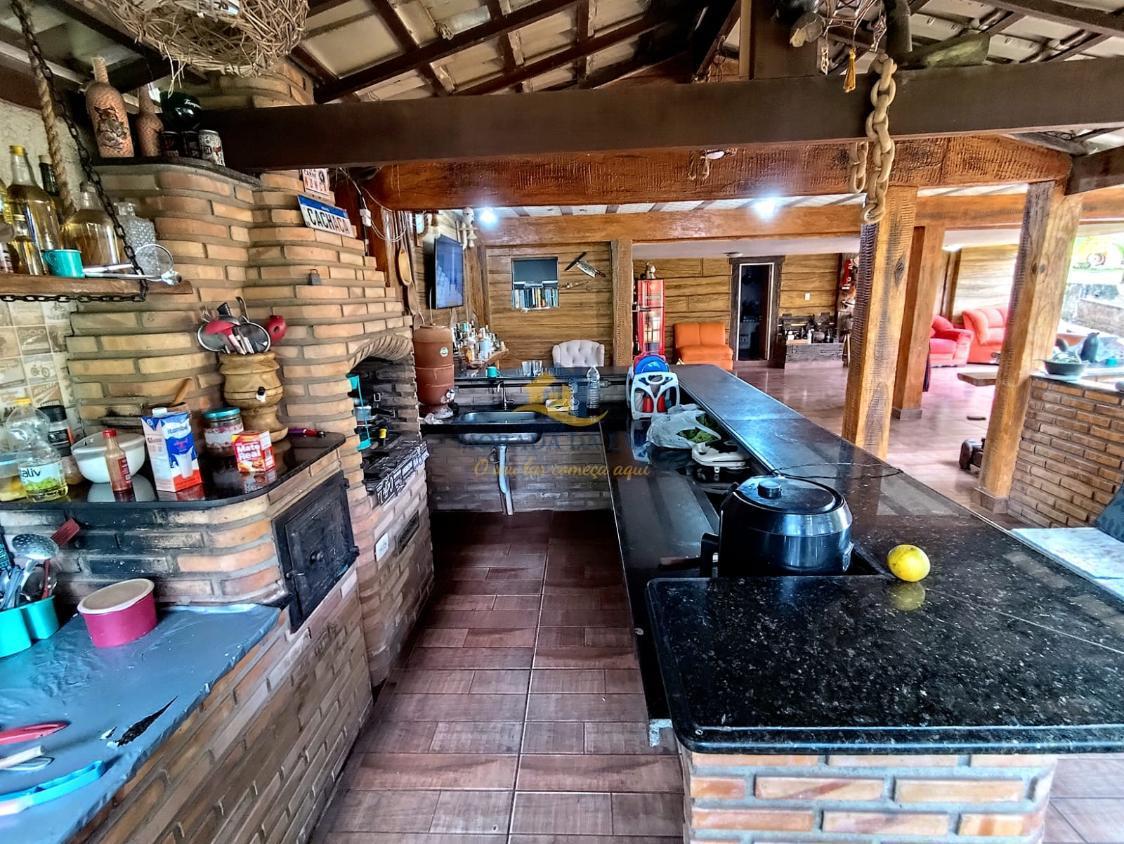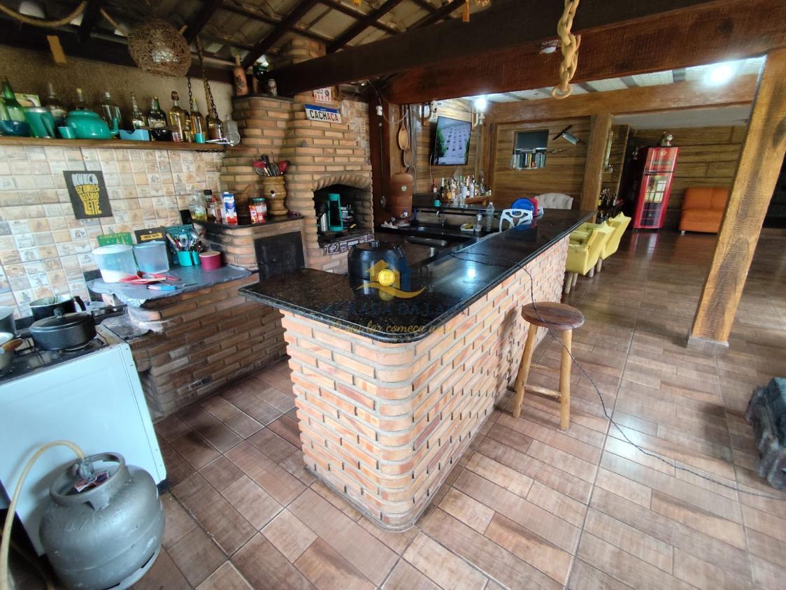 * Área gourmet (nível abaixo da casa, com acesso por rampa) composta por: churrasqueira, fogão a lenha, pia com bancada em granito, quarto de despejo, sauna e lavabo