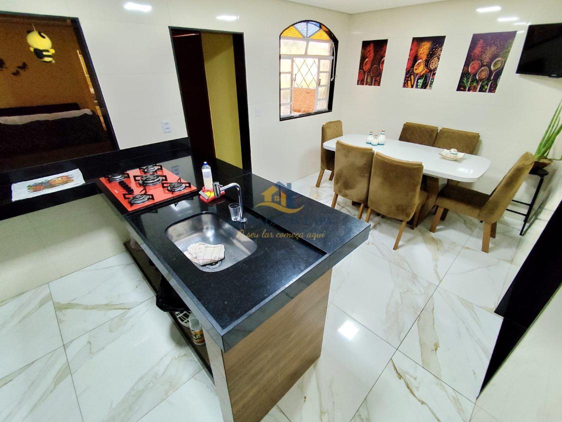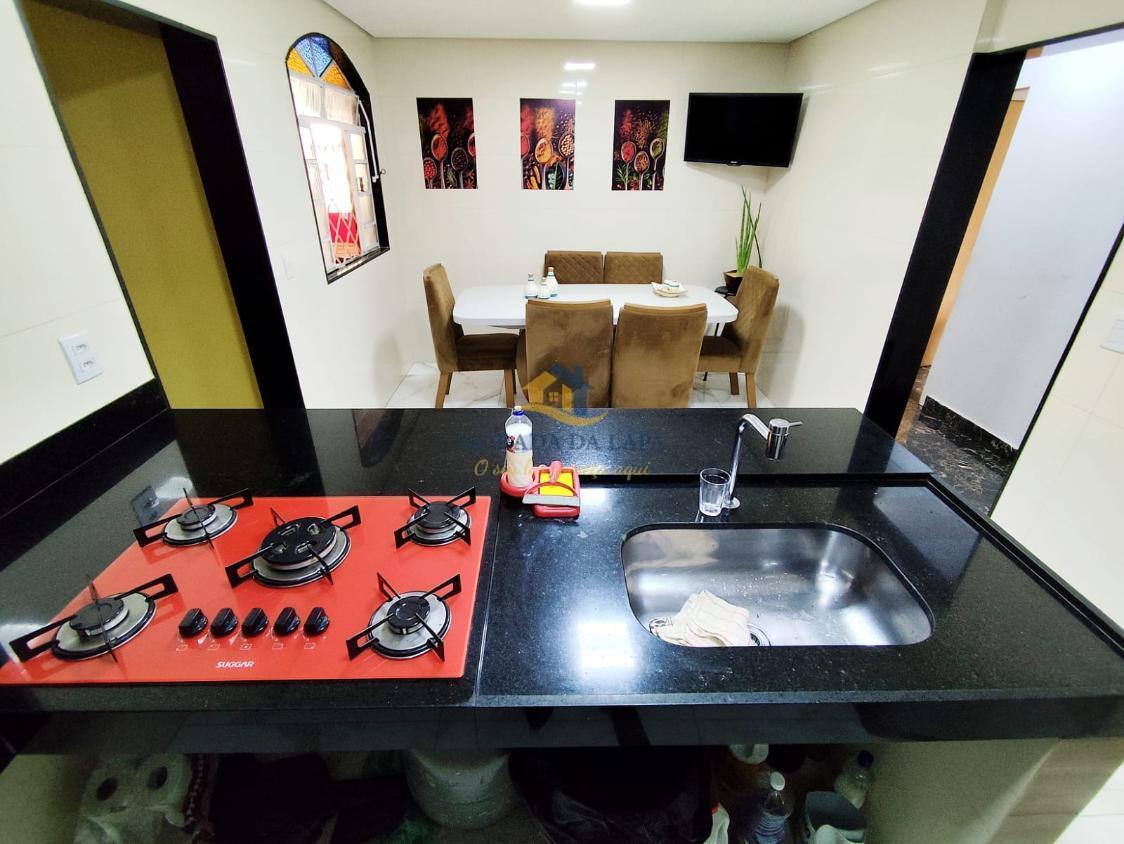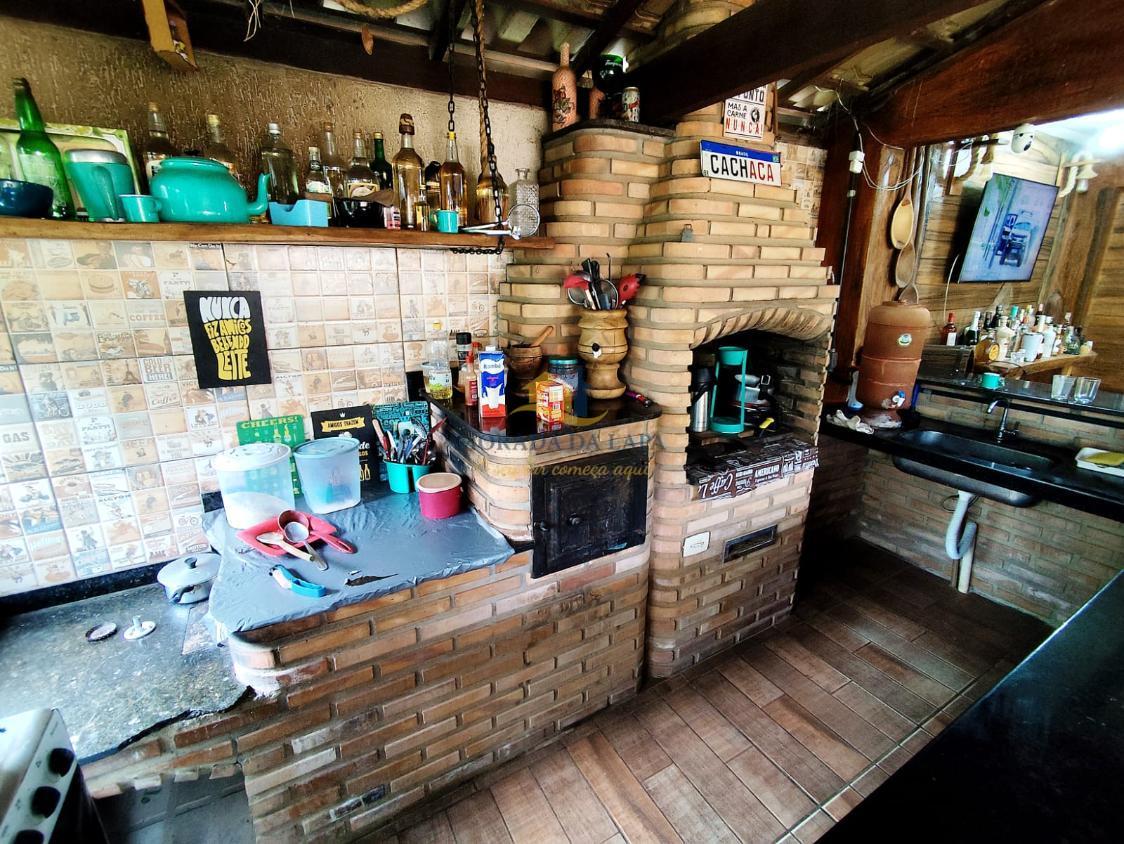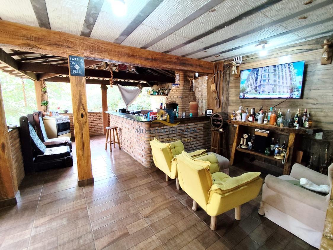 * Área gourmet (nível abaixo da casa, com acesso por rampa) composta por: churrasqueira, fogão a lenha, pia com bancada em granito, quarto de despejo, sauna e lavabo